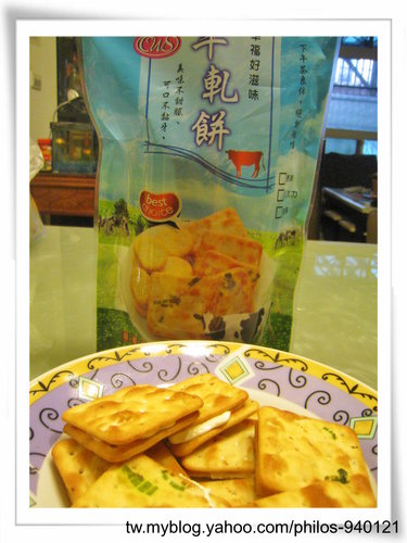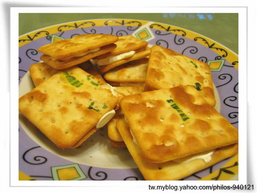 蘇打餅上有著蔥香味