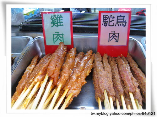 有鹿肉*2、牛肉*1、鴕鳥肉*1、羊肉串*1