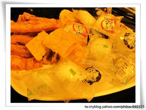 海苔奶酪燒、排骨酥、水晶餃、魚餃、蛋餃、蝦餃、米血糕、芋頭