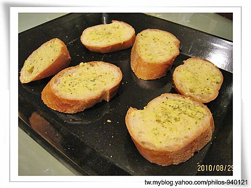 切片抹上蒜泥醬,放入烤箱微烤