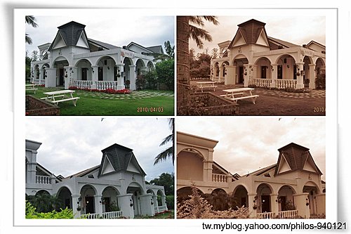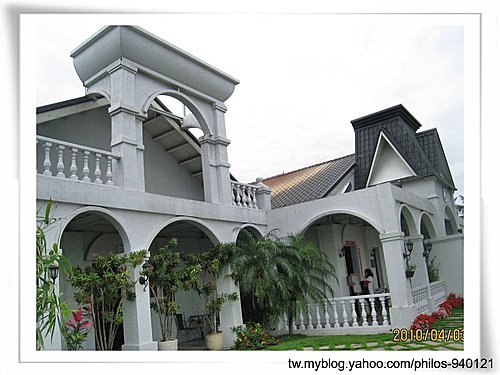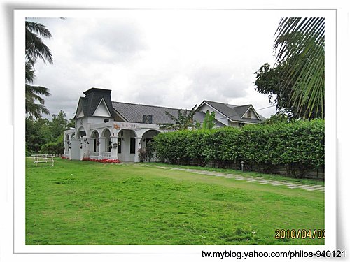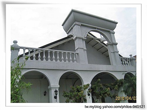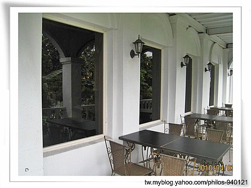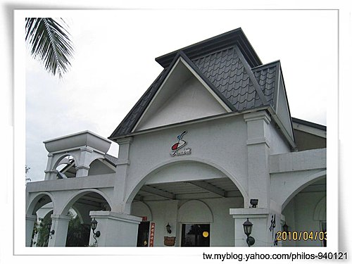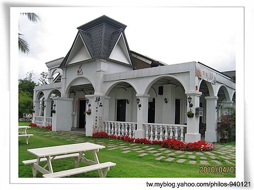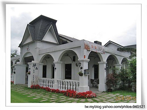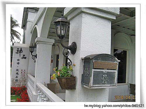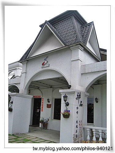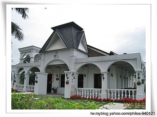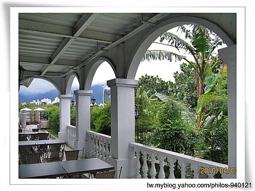 『神品咖啡館』有著歐式混合地中海風情的白牆迴廊建築