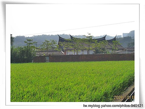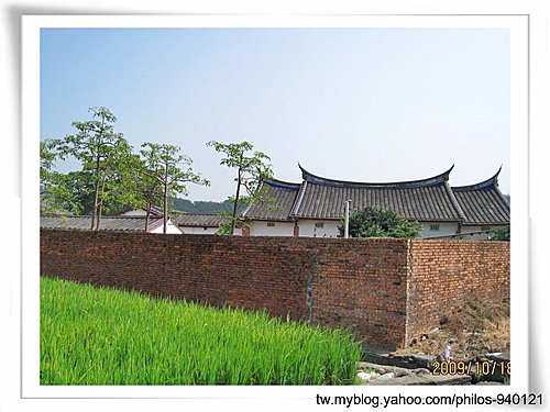 古宅座落于青翠田野中,紅磚黑瓦與綠野相輝映,十分醒目~