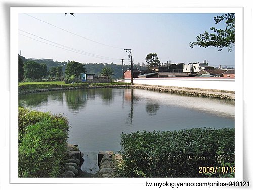 古宅前有一半月形水池(半月塘),即所謂的「風水池」、「案前池」