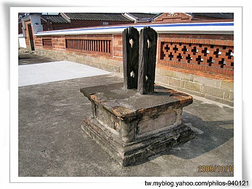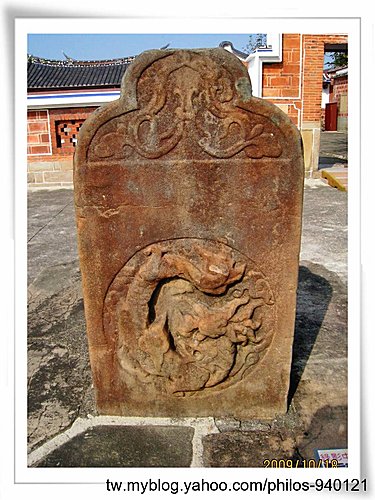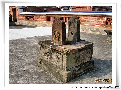 石造夾杆台座~外埕的兩對旗杆座,是李騰芳中舉後所立