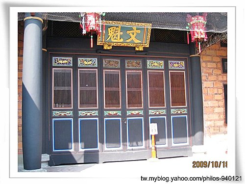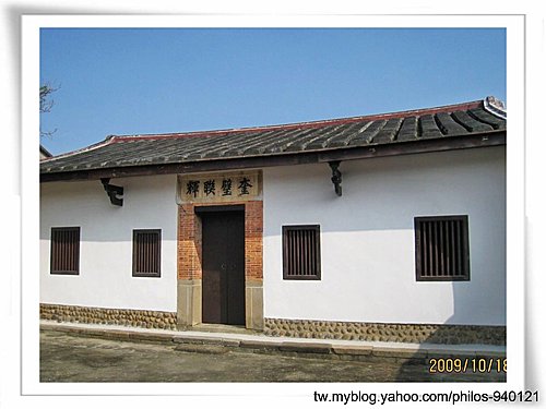 外埕左側護龍前有一間門楣上掛著「奎璧連輝」字匾的書房