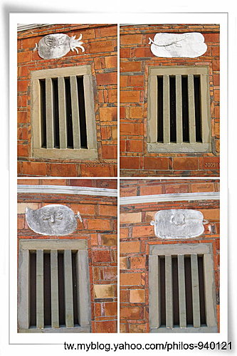 門廳前外庭的左内護龍石條窗上的圖樣