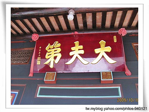 門廳大門掛有「大夫第」扁額,步入廳內,空無一物,光線幽暗
