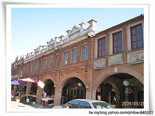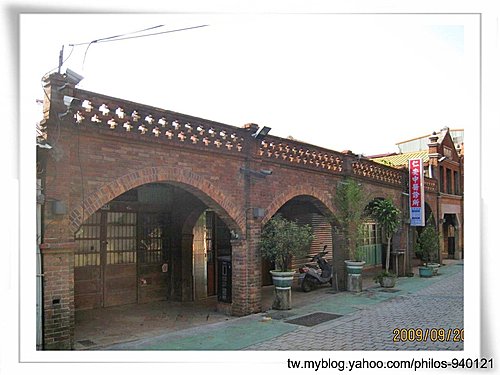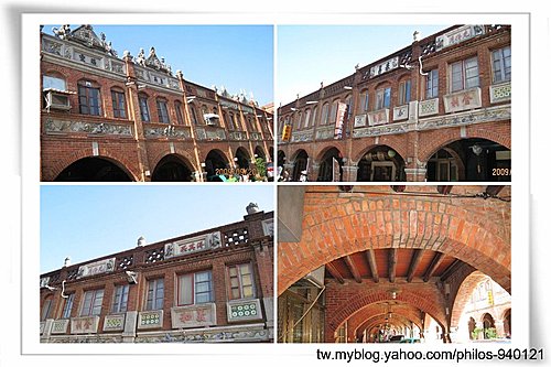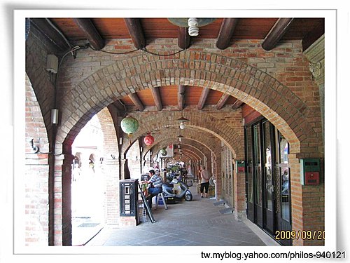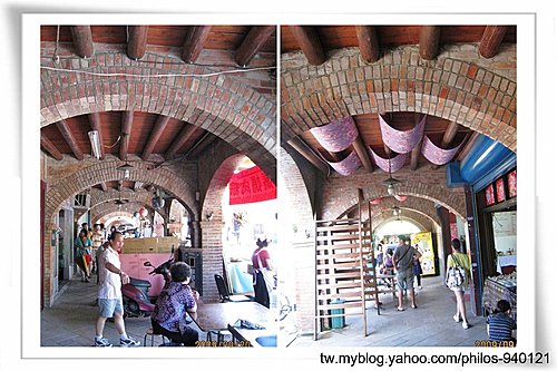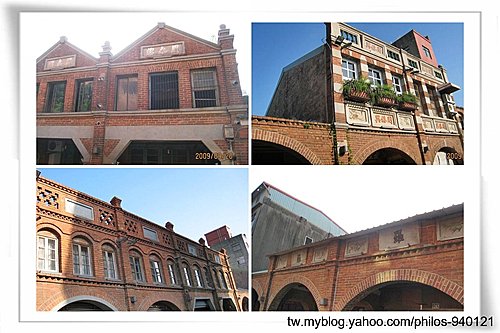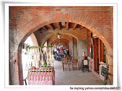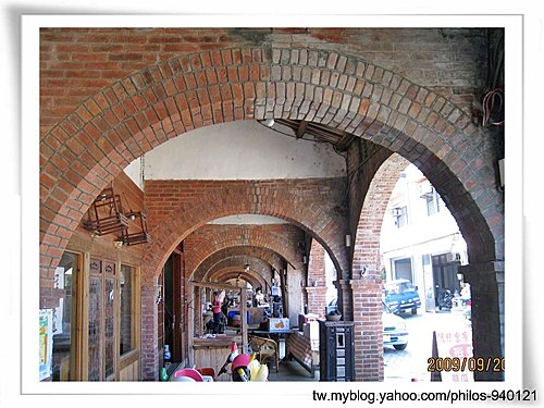 老街亭仔腳(騎樓)紅磚拱廊,一眼望去,圓拱層層如隧道~深邃幽遠
