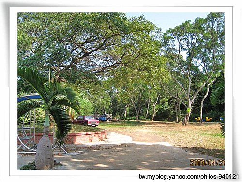 小小的公園內,林木扶疏,步道的中間鋪置細石