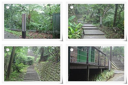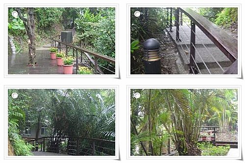 後慈湖磁磚上刻有蝴蝶圖案 及林間石椅上擺設之銅製昆蟲像 及林間栩栩如生之松鼠像