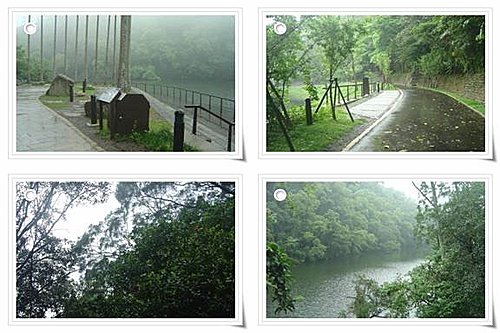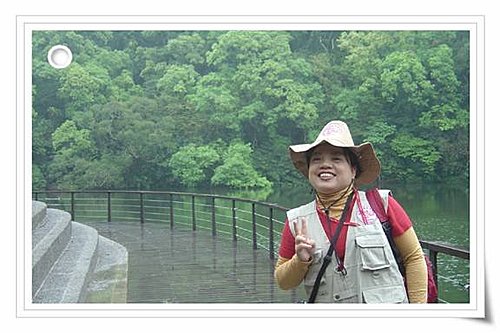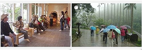 導覽人員們仔細聆聽老師的講解 學員們雨中即景欣賞慈湖之美