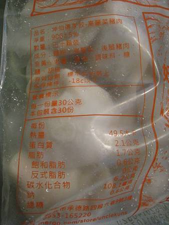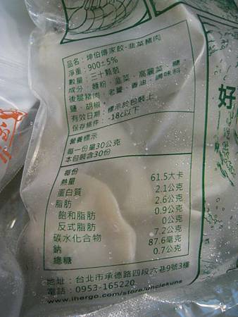 包裝袋背面有詳細的商品內容介紹和簡易的水餃煮法